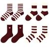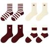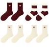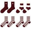 Ancora Women's Mid Tube Pure Cotton Socks Korean Style Bow Embroidery Warm Breathable Festive New Year Girls Socks