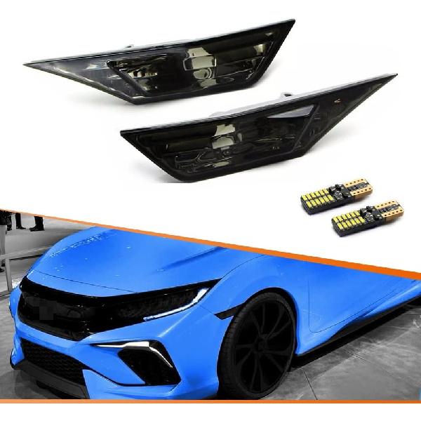ADIIL Smoke Lens Amber Full LED Bulb Front Bumper Side Markers Turn Signal Light Set Compatible with 2016-2021 Honda Civic 10th Gen Sedan Coupe