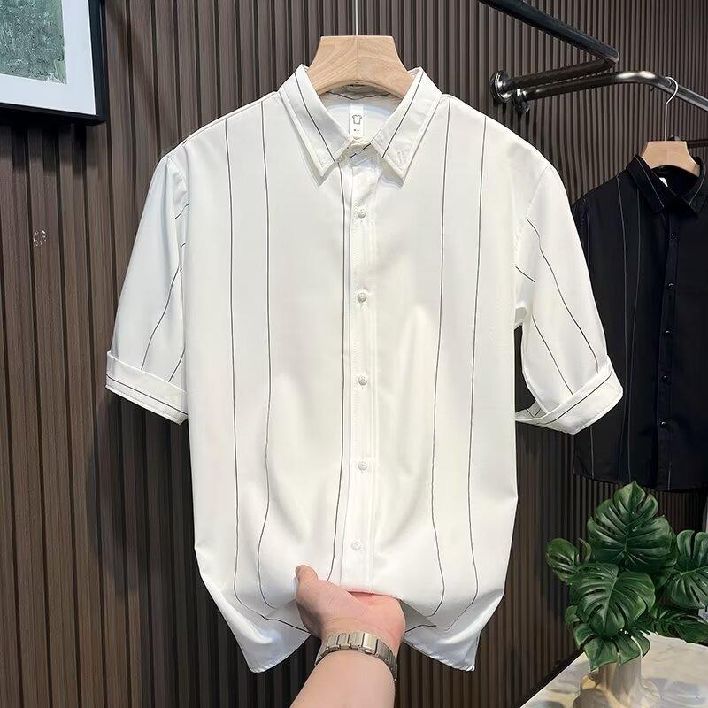 Summer High-end Striped Shirt Men's Short-sleeved Loose Trendy Casual Half-sleeved Top