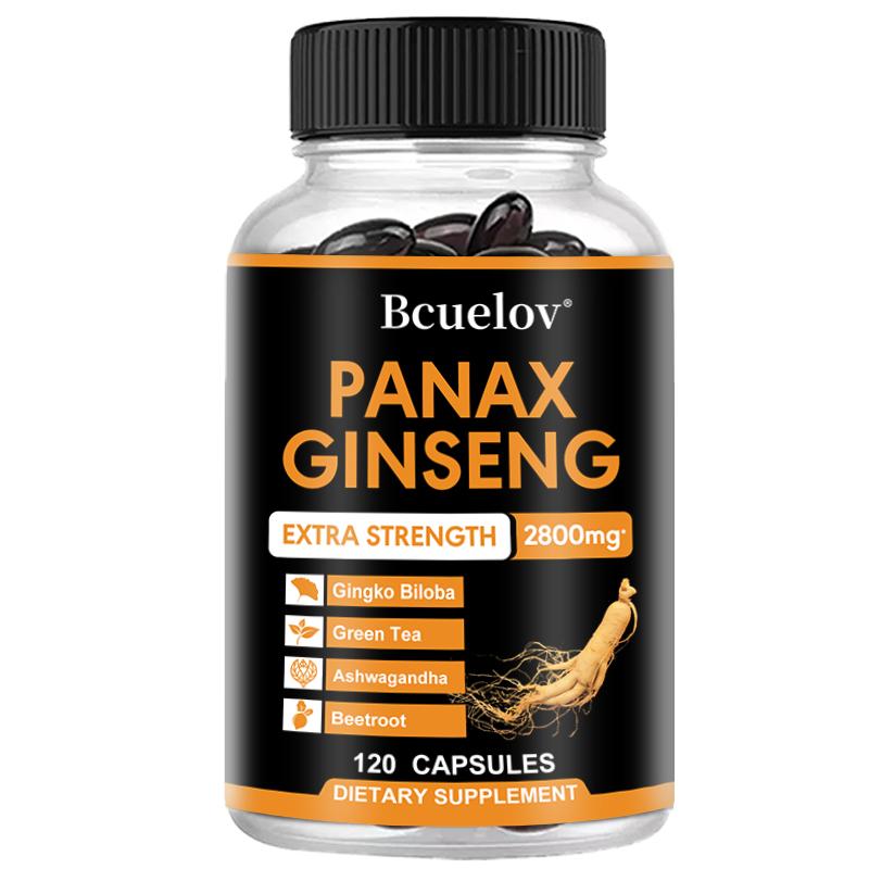Bcuelov Korean Ginseng Capsules 2800mg with Ginkgo Biloba Leaves and South African Drunken Eggplant to Boost Energy and Endurance 120 Capsules