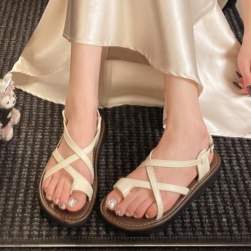 2026 Sandals for Women's Summer Roman Style Casual Clip Toe Flat Sandals Women's Soft-soled Vacation Beach Sandals