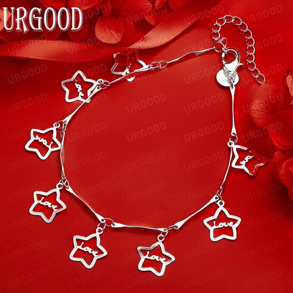 925 Sterling Silver Fashion Jewelry Star Pendant Bracelet Gift