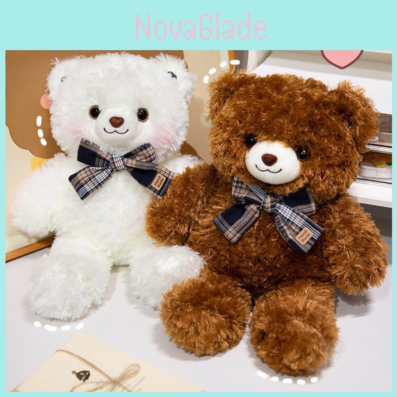 Adorable Brown And White Bow Tie Teddy Bear Plush Doll Perfect For Gifts And Promotions