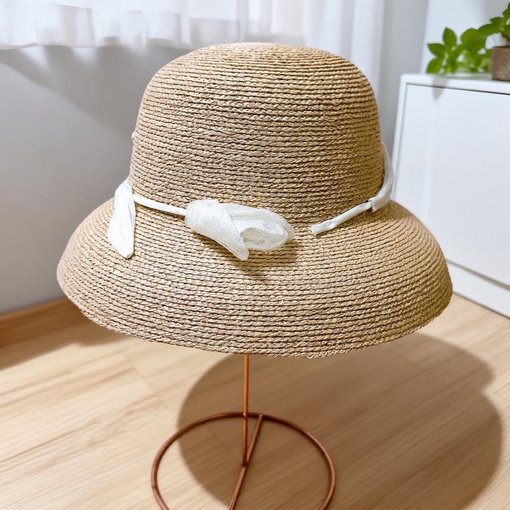 Japanese Hepburn-Style Tulip Raffia Sun Hat for Women - Hand-Woven Summer Straw Hat with Sun Protection