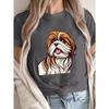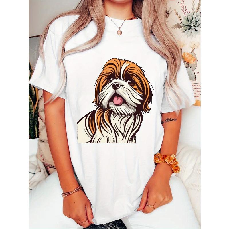 Cute Shih Tzu Puppy Print T-shirt, Short Sleeve Crew Neck Casual Top for Summer & Spring, Women's Clothing