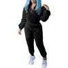 Set Trening Plușat Culoare Solidă pentru Femei 2 Bucăți Top cu Mânecă Lungă și Guler Ridicat și Pantaloni Groși cu Talie Elastică Îmbrăcăminte Sport