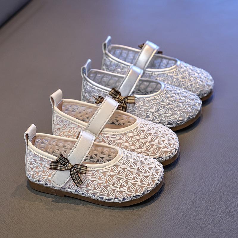 Girls' Princess Shoes Soft-Sole Non-Slip Leather Shoes, Breathable Mesh Hollow-Out Casual Shoes for Toddlers