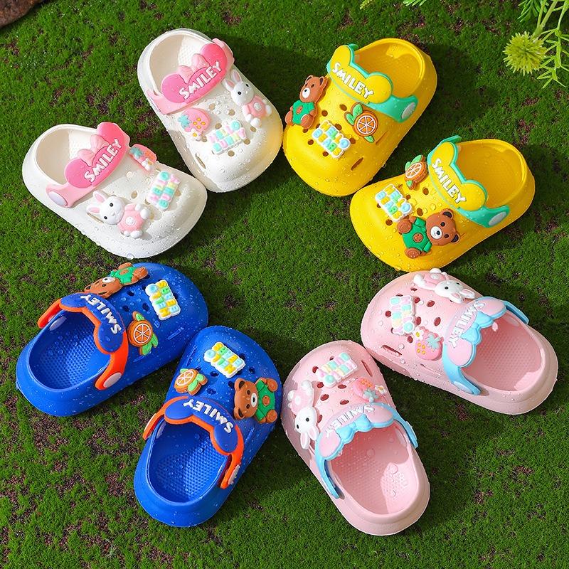 Girls' Sandals, Children's Summer Indoor Soft-Soled Anti-Slip Slippers for Infants and Toddlers, Cartoon Closed-Toe Hole Shoes for Boys.