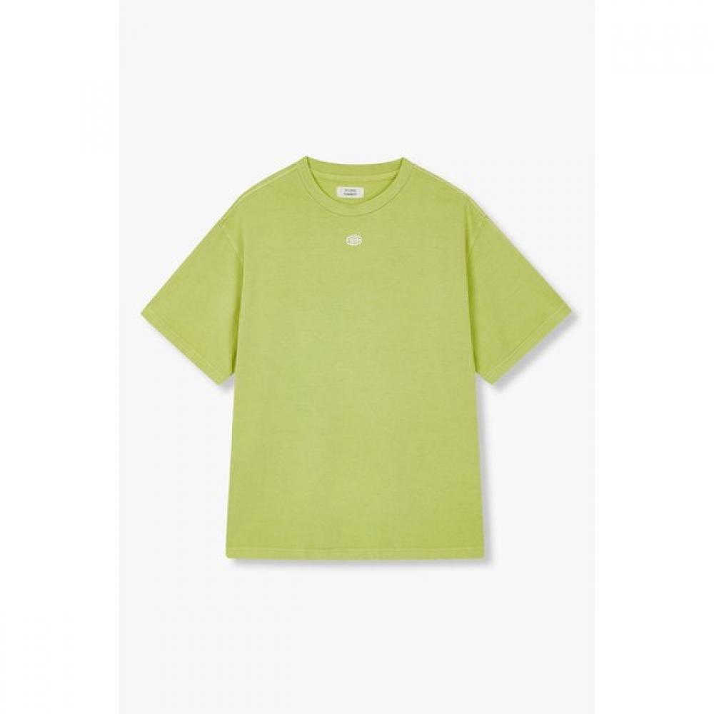 The Pigment T-shirt features a basic round neckline design that suits various face shapes, with minimal neck stretching and a relaxed fit. The front and back have mini graphics that serve as simple points, making it ideal for wearing alone or as an inner layer. The drop shoulder silhouette provides a comfortable wearing experience. Made from a cotton blend, it boasts a unique washed vintage color.