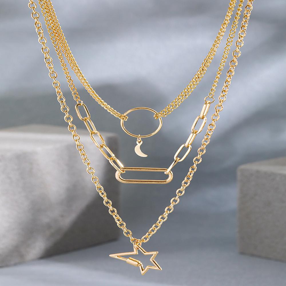 Elegant Gold Star And Moon Multi Layer Necklace For Women Perfect For Everyday Fashion