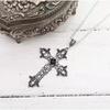 Gothic Dark Red Ruby Cross Necklace Vintage Floral Pendant For Unisex Fashion Lovers