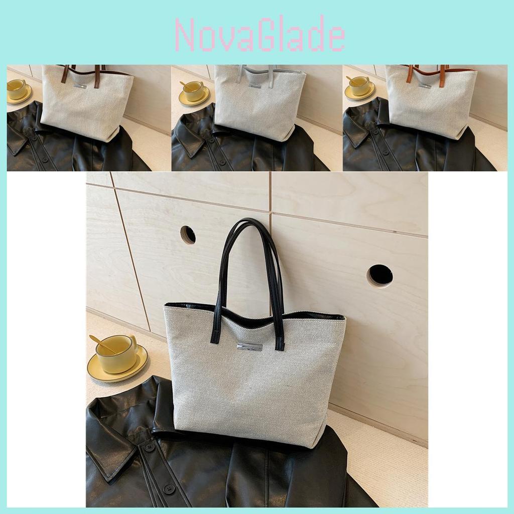 Stylish Large Capacity Tote Bag For Women 2024 New Color Block Canvas Shoulder Bag