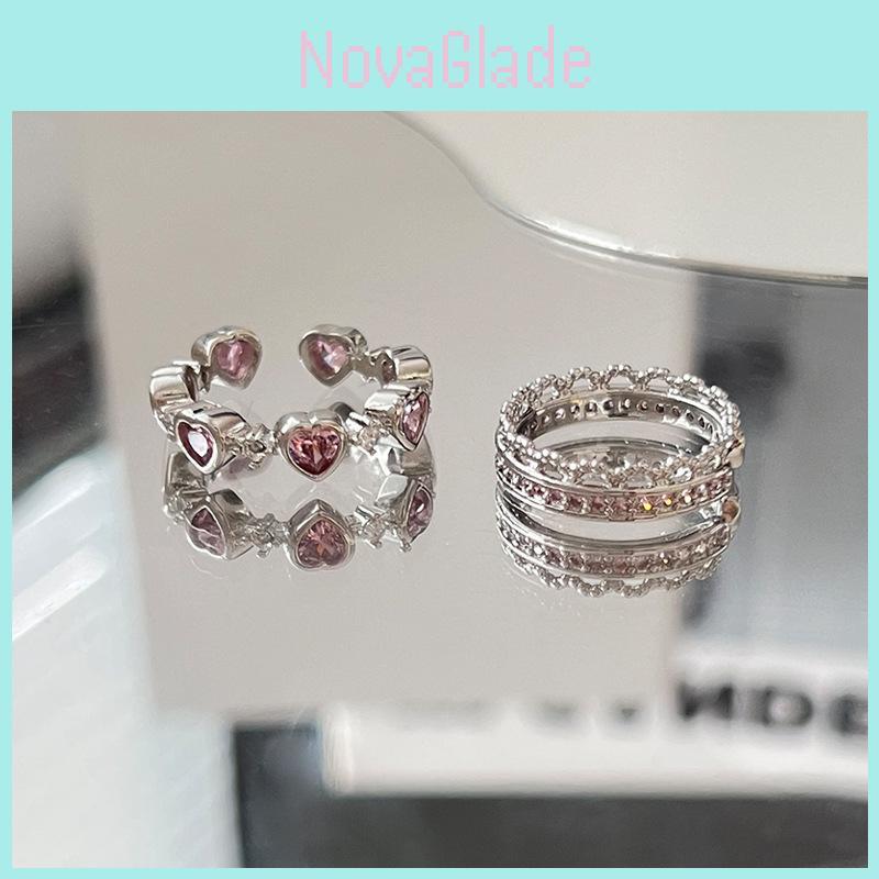 Charming Pink Heart Ring For Women Adjustable Stylish Design Trendy Copper Accessory