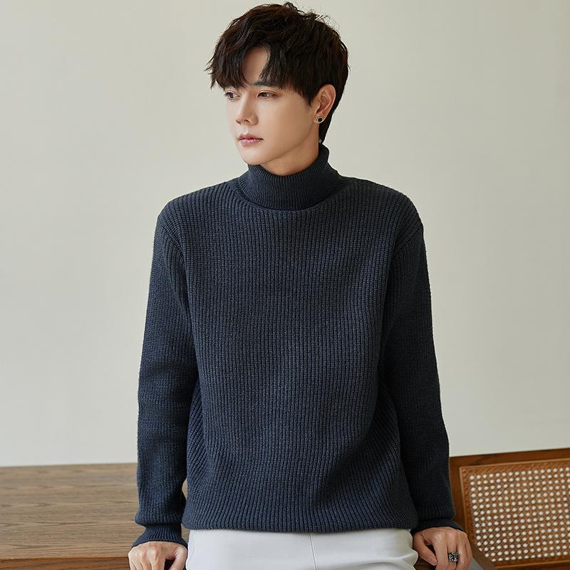 New Turtleneck Sweater Men's Korean Version Trendy Semi-knitted Sweater with Bottoming Shirt Inside