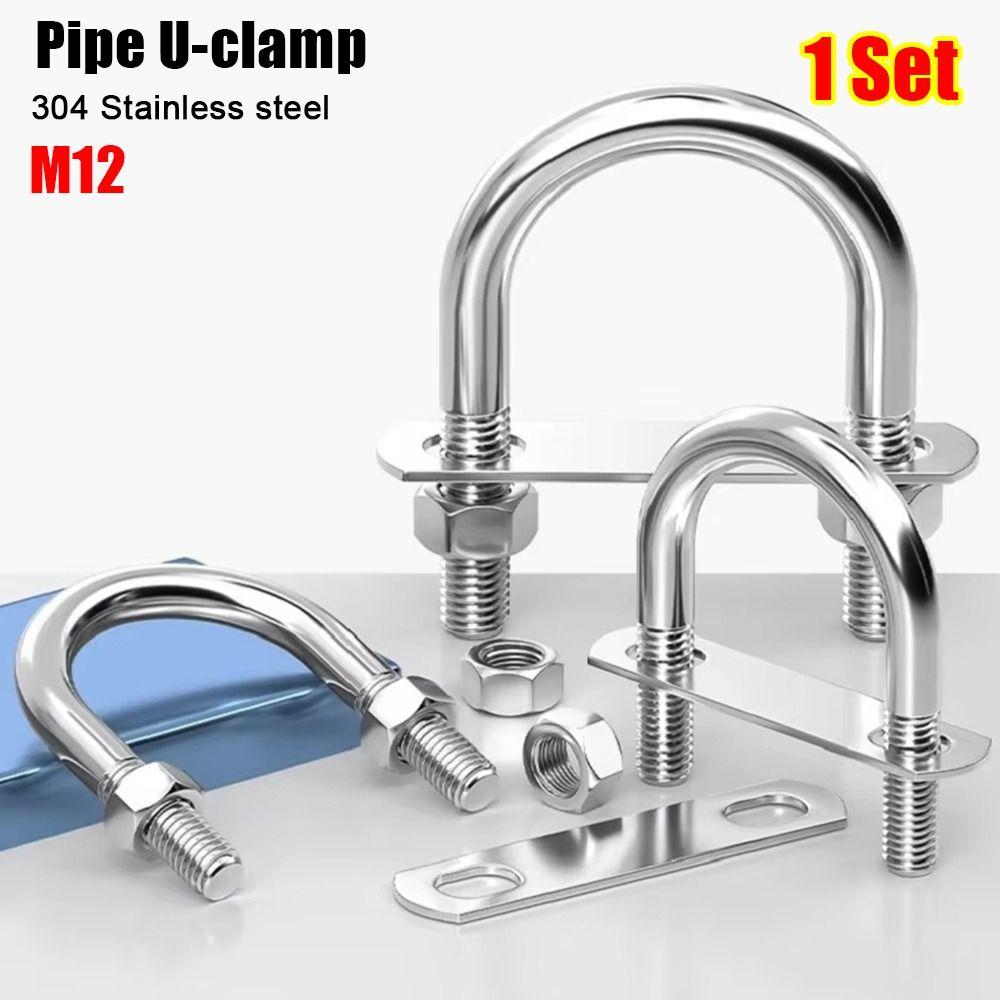 1Set 304 Stainless Steel Pipe U-clamp Screws Right Angle U-bolt Durable Round Bolt for Round Tube