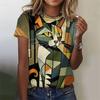 Summer Graffiti Cat 3d Print Men's T-shirt Oversized Short-sleeved O Neck Casual Funny Tops Vintage Female Tee Shirts