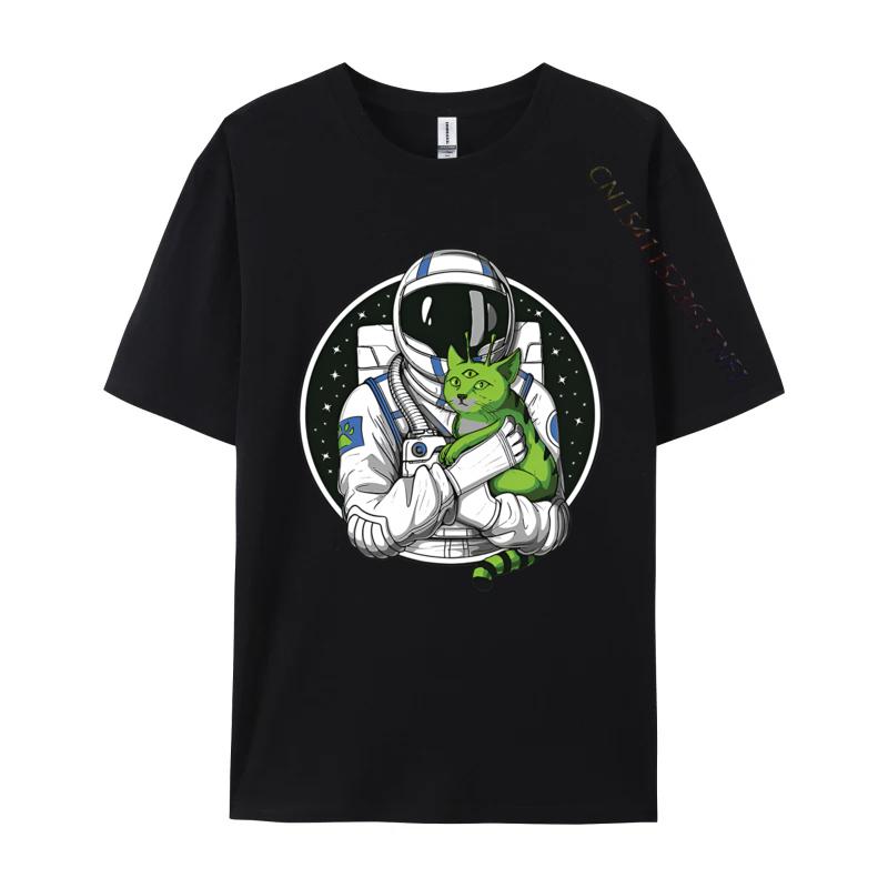 Astronaut Alien Cat Psychedelic Space Tshirt Men Cotton Tshirts Astronaut Gifts Man Tops Streetwear Newest Design