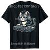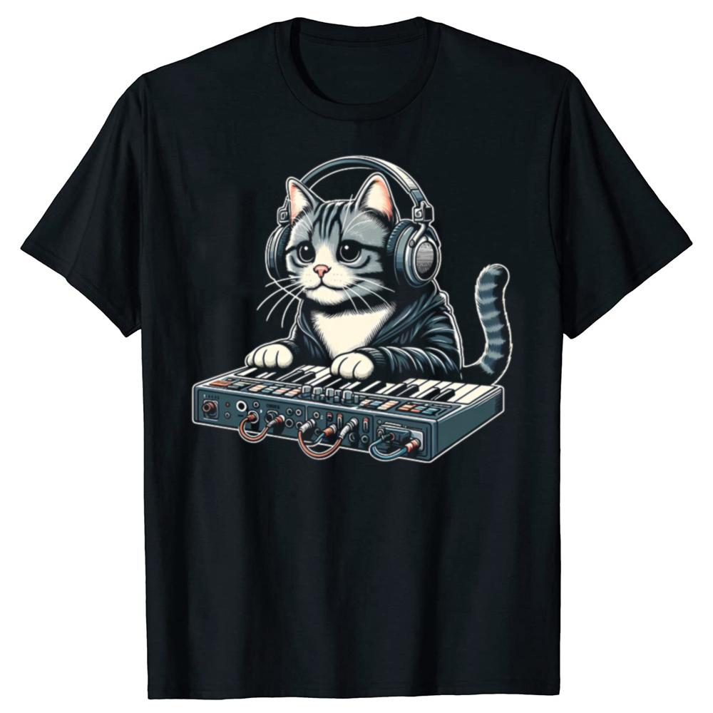 Funny Cat Synthesizer Music Synth Electro Techno Graphic Tshirts Men Fashion Casual Tshirt 100 Cotton Loose Oversized T Shirt