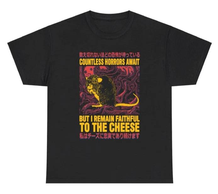 Faithful to the Cheese Rat T-Shirt | Japanese Horror Funny Meme Tee | Gothic TEE
