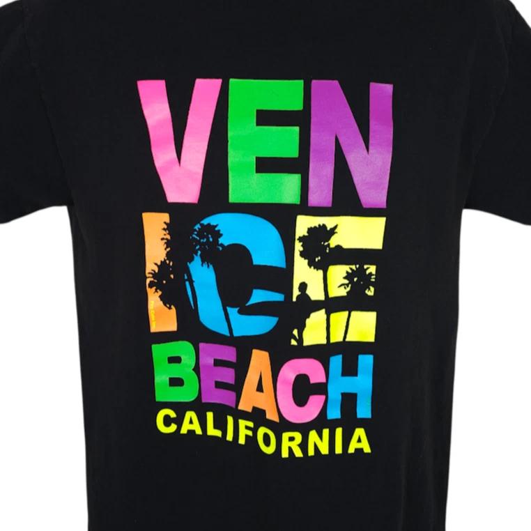 Venice Beach 100% Cotton T-shirt Mens Tees Top Mens Size Medium Black California Surfing Travel Tee