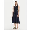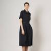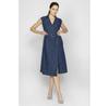The Women's Regular Fit Adjustable Belt Stretch Cotton Wrap Dress is presented in a dark blue color and provides a stylish yet comfortable experience. This dress features an adjustable belt that emphasizes the waistline, accommodating various body types. It is made from stretch cotton material, offering flexibility in wear.