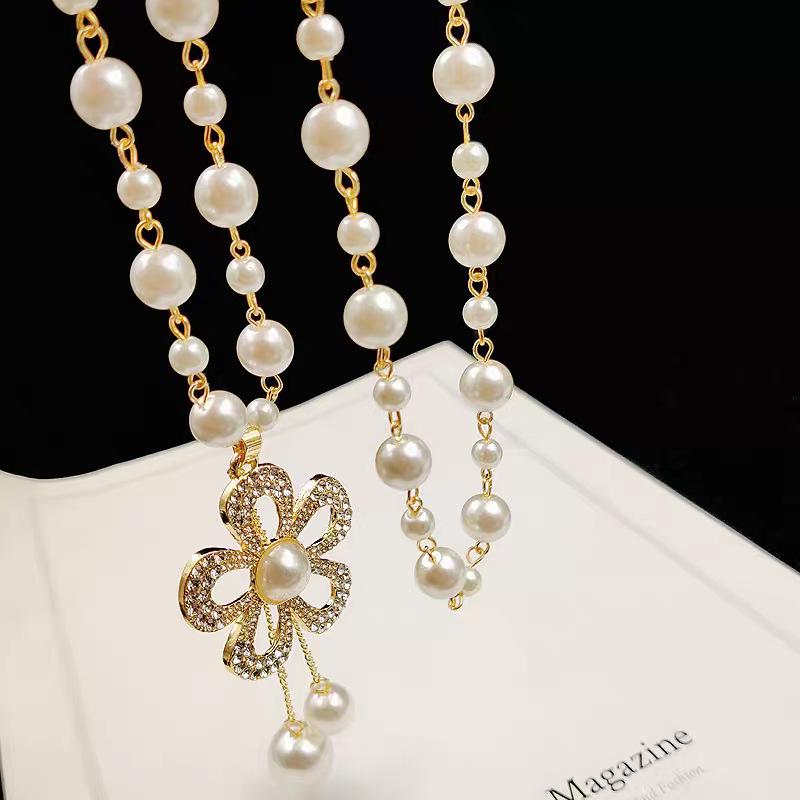 Women's High-End Flower Bead Sweater Necklace - Trendy Autumn/Winter 2023 Design
