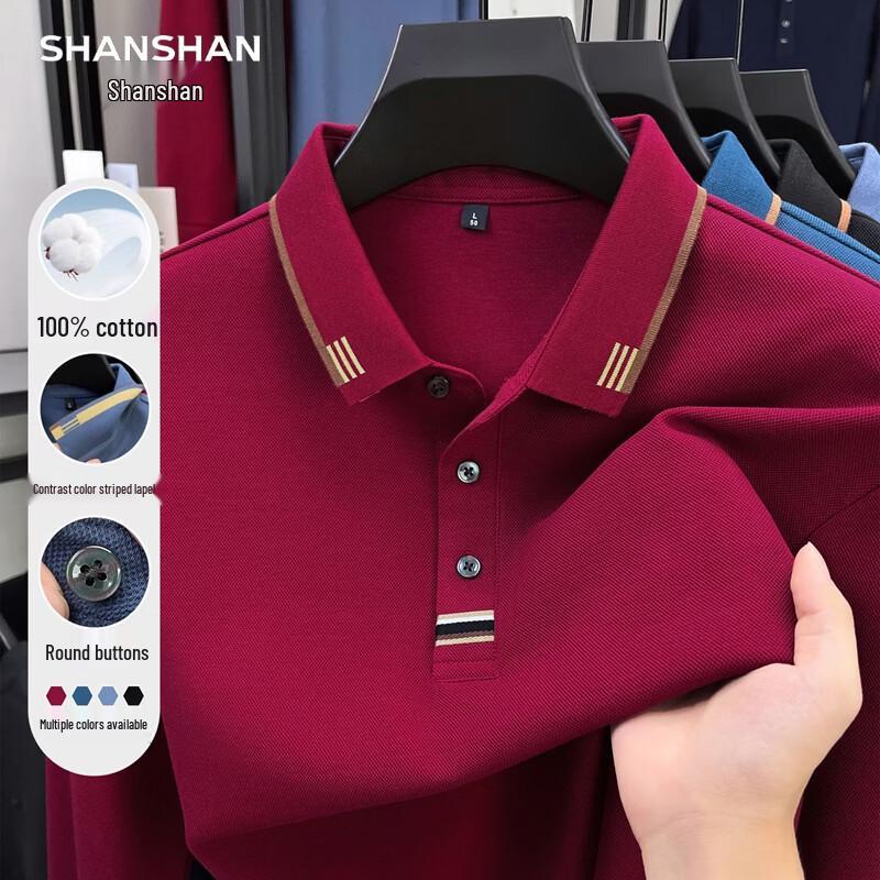 SHANSHAN Men's Business Casual Long-Sleeve Polo T-shirt