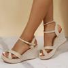 2026 Black Beige Wedge Sandals for Women's Heel Platform Fish Mouth Strap Fashion Shoes Female Summer Buckle Strap Sandal