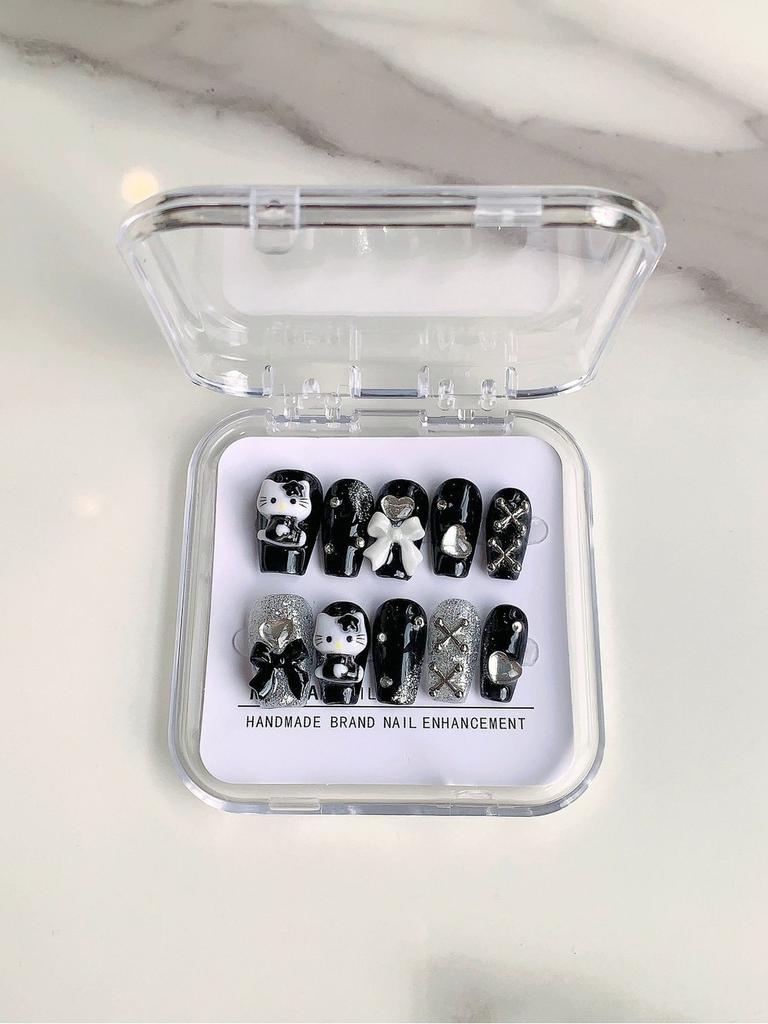 This is a unique handmade nail art - mark Kittynail sticker, adding a touch of dark elegance to your look.