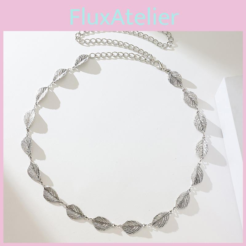 Woman Leaf Texture Metal Waist Chain With Hook Closure For Spring Summer Fashion Accessory