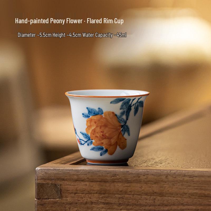 Guanlan Hand-Painted Peony Ceramic Tea Cup, Single Kung Fu Master Cup for Personal or Guest Use