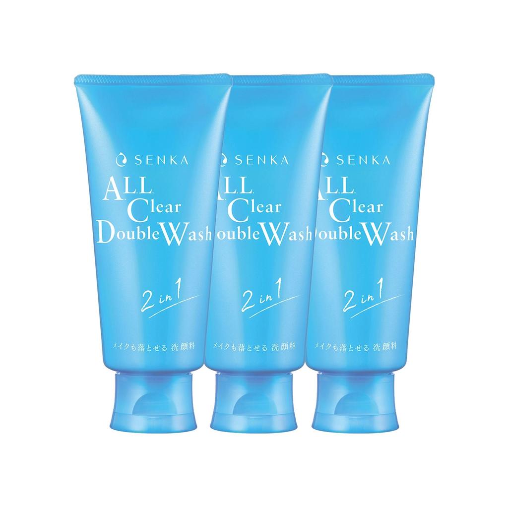 Senka All Clear Double Wash Cleansing Foam is a dual-function facial cleanser designed to remove makeup and cleanse the skin in one step. Its rich, dense foam effectively dissolves makeup residue, impurities, and excess sebum while maintaining the skin’s moisture balance. Formulated with moisturizing ingredients, this cleanser leaves the skin clean, soft, and refreshed without dryness. This value set includes three 120g tubes, perfect for daily cleansing.