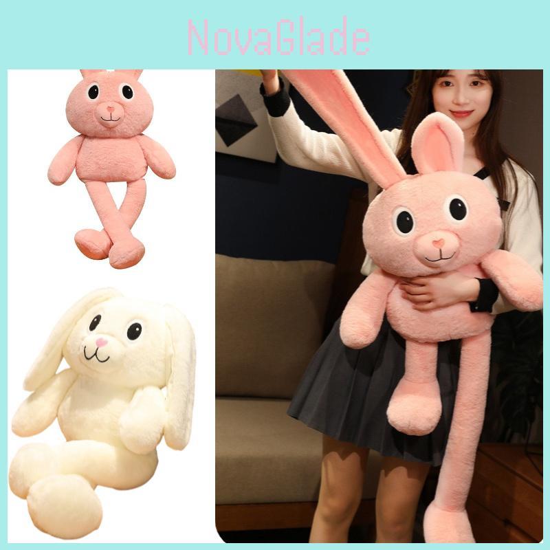 Adorable Pink And White Stuffed Bunny Toy For Girls Plush Rabbit Doll With Long Ears