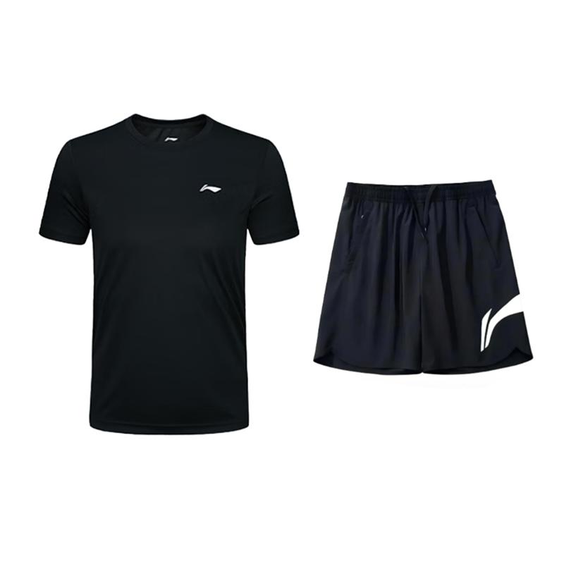 Li-Ning Plain Simple Fashion Breathable Quick-Dry Comfortable Versatile Round Neck Pullover Short Sleeve T-Shirt Casual Sports Set YATV113-2+YKSV197-2