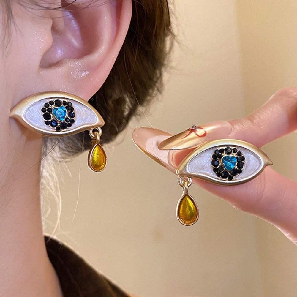 Pleated Crystal Devil's Eye Earrings Devil's Eye Vintage Long Drop Earrings Girls