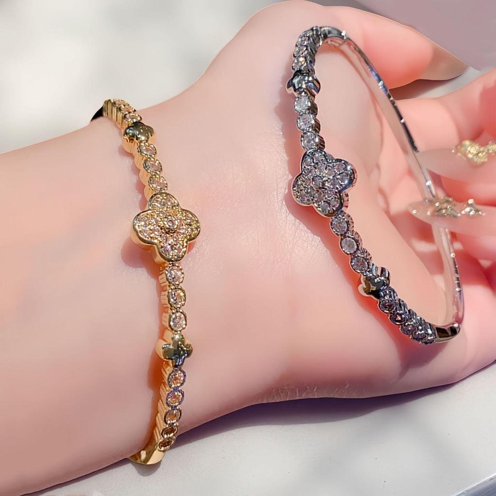 Luxurious Four-Leaf Clover Plated Bracelet - Elegant, Versatile, and Fashionable Openwork Design