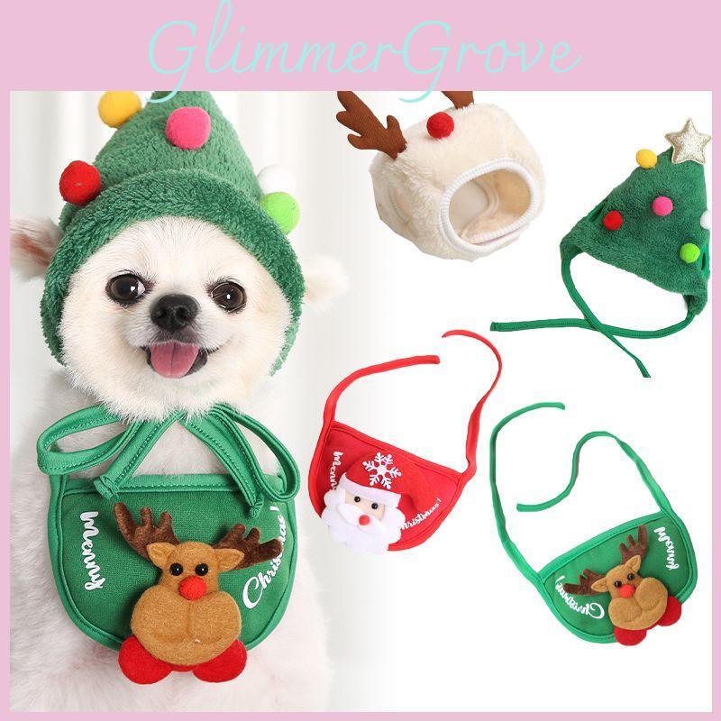 Plush Dog Cat Christmas Hat And Bib Set For A Cozy Festive Look
