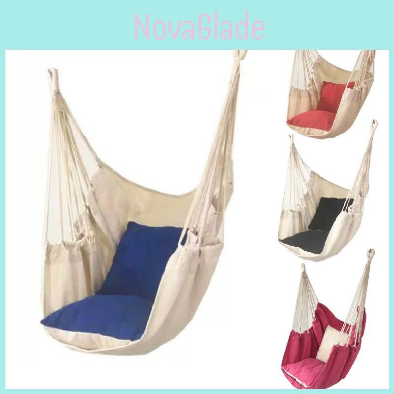 Hamac suspendat elegant pentru relaxare în aer liber, cu perne moi și frânghii rezistente