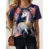 Summer Fashion Women's T-Shirts Funny Animal hawaii Stylish Printed Casual Short Sleeve Crew Neck Tees Round Neck Regular Tops