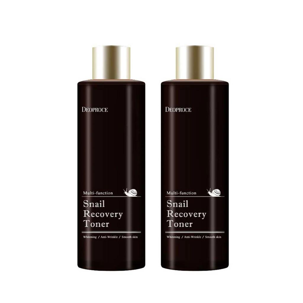 Deoproce Snail Recovery Toner is a hydrating and repairing toner formulated with snail mucin to improve skin elasticity and restore moisture balance. This toner helps soothe and revitalize tired skin while enhancing smoothness and overall skin texture. The lightweight formula absorbs quickly, leaving the skin soft, refreshed, and well-prepared for the next skincare steps. This set includes two 210ml bottles for consistent daily use.