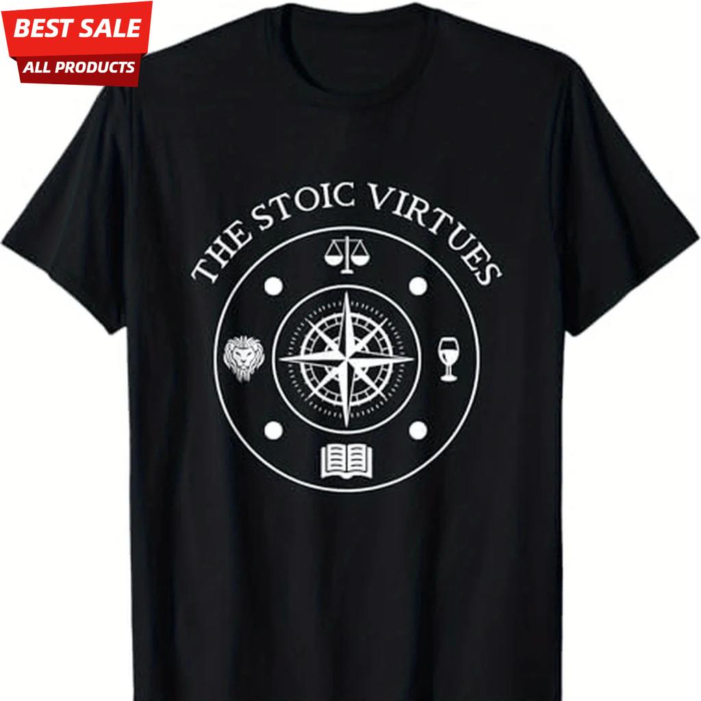 Stoic VirtuesMarcus Aurelius Seneca PhilosophyAncient Roman Stoic Compass Design100 Cotton Oneck Printed Mens Tshirt