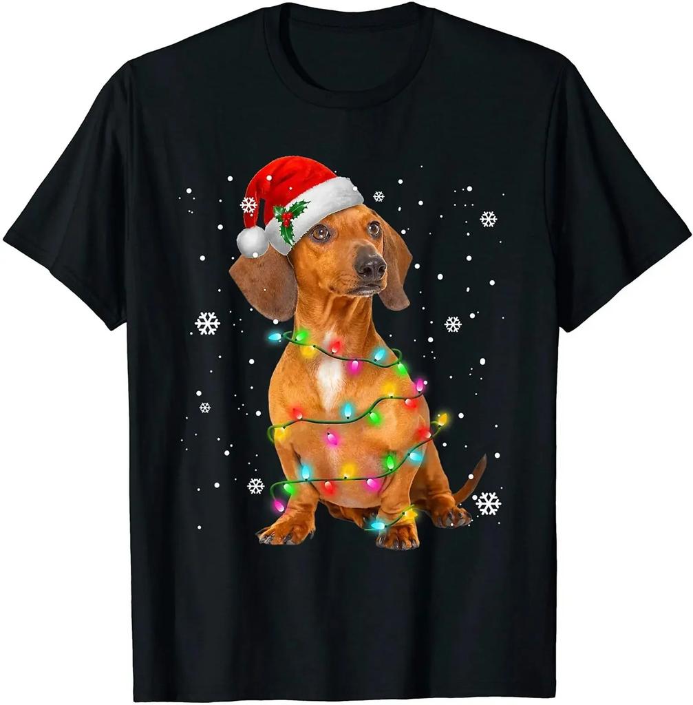 Funny Dachshund Dog Christmas Lights Xmas Gift Mens T Shirt New 100 Cotton Short Sleeve ONeck Tshirt Casual Unisex Top