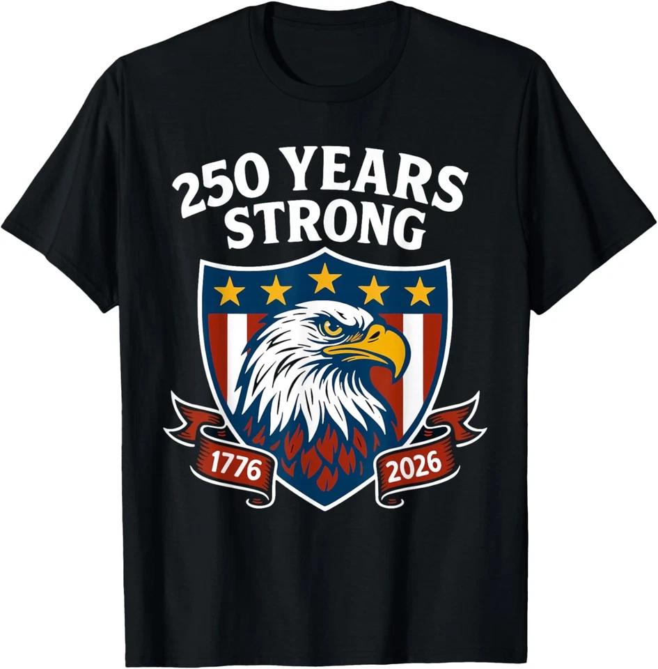 250 Years Strong Eagle Patriotic 1776 2026 250th Birthday T-Shirt
