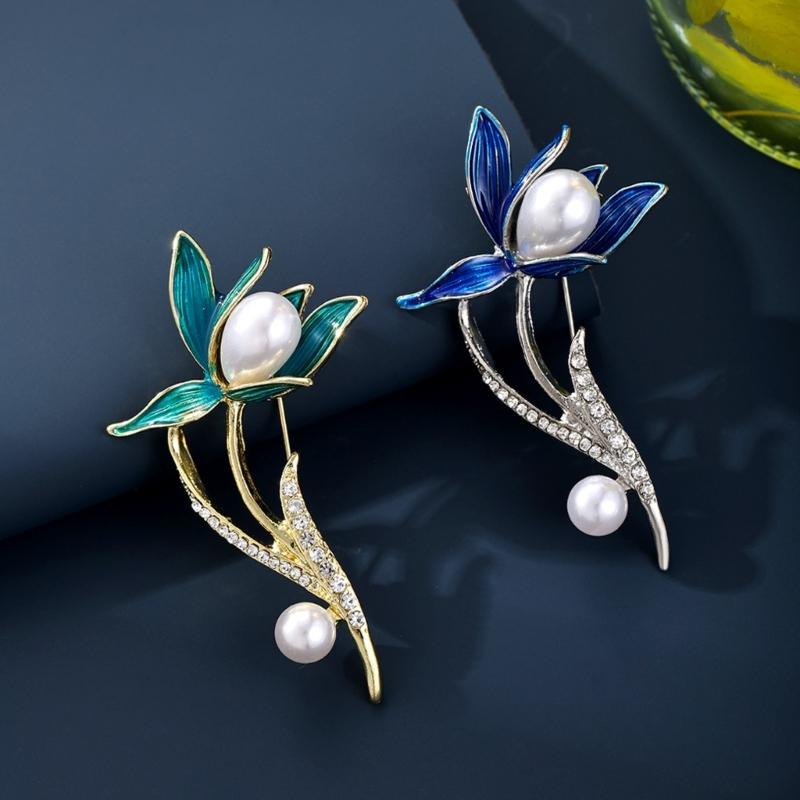 Fashionable Magnolias Stylish Flower Brooch Pin for Women with Elegant White Tulips Designs Alloy Jewelry Accessories
