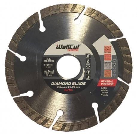 Disque diamant turbo - WELLCUT - STANDARD - Ø125 x 22,23 mm - Segment 7 mm - Vitesse maxi 80 m/s
