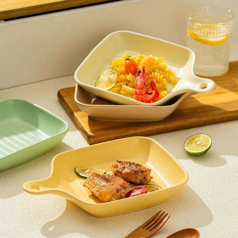 Cream Wind Ceramic Plate Household Oven Baking Plate Simple Ceramic Plate With Handle Western Food Plate Cheese Plate Baked Rice Plate