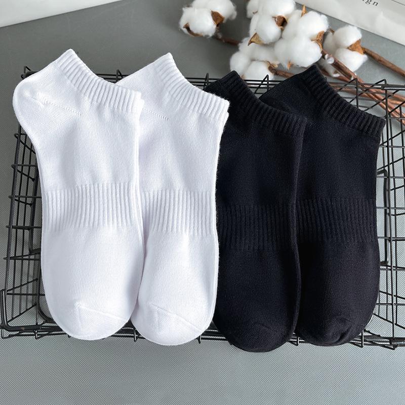 Men's & Women's Ankle Boat Socks: Black & White, Solid-Color, Odor-Resistant, Versatile, Thin Sports Socks for Spring/Summer