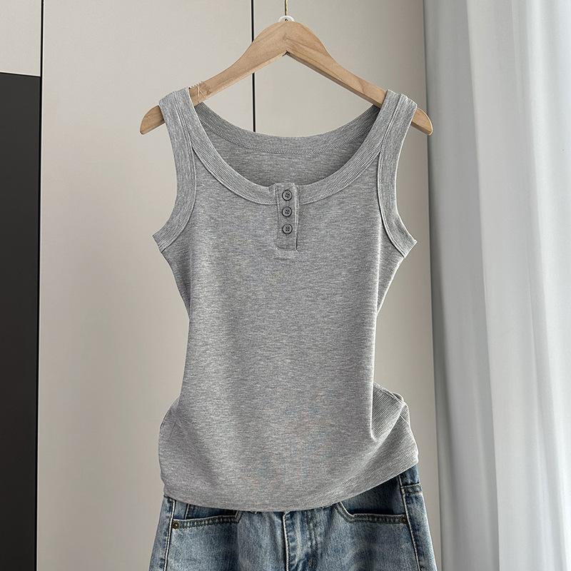 Anti-Armpit-Fat Cami Tank Top Ribbed Slim Fit Button Inner Wear Versatile Everyday Stretchy Slim Base Layer Soft Fabric Inner And Outer Wear Top