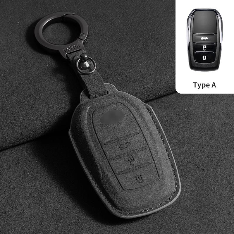 Leather Car Key Case for Toyota Prius Camry Corolla CHR C-HR RAV4 Land Cruiser 2/3 Button Keychain Suede Accessories