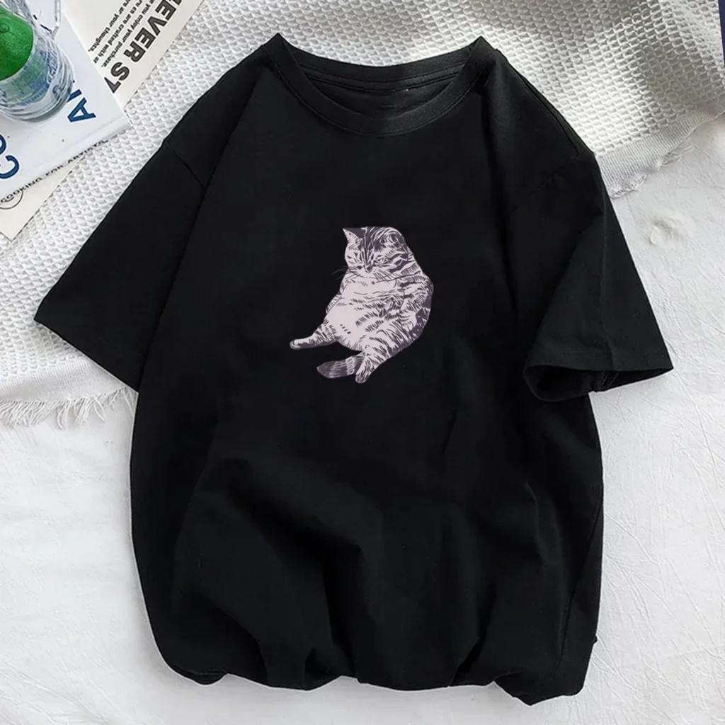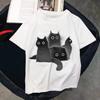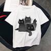Angry Cat Printed Short Top Women's Cotton T-shirt Women's Harajuku Fashion Couple Loose Street Style Clothing
